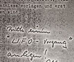 – Vorgänge, wie sie aus der BND-Akte hervorgehen, etwa den handschriftlichen Vermerk mit der Aufforderung „Bitte einen ‚UFO-Vorgang‘ anlegen!“ (s.Abb.l.), oder Amtshilfegesuche an andere Stellen bei der Untersuchung und Bewertung von Sichtungen unbekannter Flugobjekte über der bundesdeutschen Grenze zur DDR und CSSR, belegen, dass es ein entsprechendes – wenn auch primär rein aufklärungstechnisches und militärisches – Interesse an derartigen Sichtungen, den geschilderten Phänomenen und diesen zugrundeliegende Melde-, Untersuchungs- und Dokumentationsmechanismen und Automatismen zumindest gab und möglicherweise auch heute immer noch gibt.