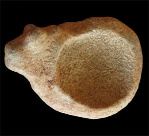 Ein zu einer zoomorphen Form gearbeitetes Steinplättchen.