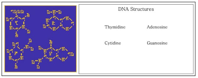 …und der DNA-Basen Thymin, Adenin, Cytosin und Guanin.