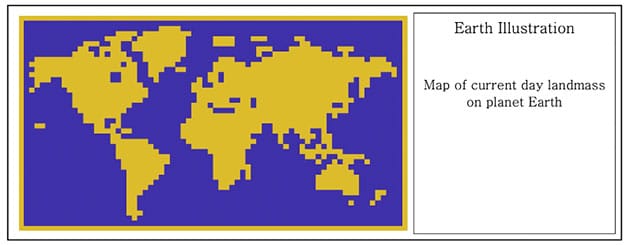 …gefolgt von einer vereinfachten Kartendarstellung und einer Beschreibung der geologischen Eigenschaften und Merkmale unseres Planeten.