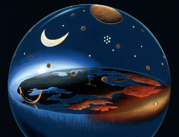 Die Himmelsscheibe von Nebra gewährt einen einzigartigen Einblick in die Ideenwelt der bronzezeitlichen Menschen. Sie ist das zweidimensionale Bild eines dreidimensionalen Weltmodells: Über der Erde wölbt sich der Himmel als Kuppel, an der die Gestirne prangen. Ein Schiff wartet, die Sonne an Bord zu nehmen.