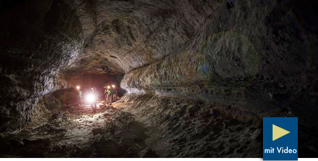 Erkundung einer Lavahöhle auf Lanzarote.