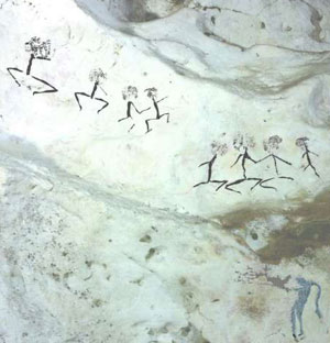 Anhand der unterschiedlichen Abbildung in der Höhle konnten die Forscher um Aubert erstmals auch eine grobe Zeitleiste der unterschiedlichen Darstellungsformen erstellen: „Nachdem zunächst Tiere im Großformat dargestellt wurden folgten menschliche Handabdrücke. Erst dann, vor rund 14.000-20.000 Jahren gingen die Künstler zu Darstellungen der menschlichen Welt, wie tanzende Menschen mit großen Haar- und Kopfschmucken über (s. Abb.l.). Eine ähnliche Folge finden wir auch in den europäischen Höhlen.“