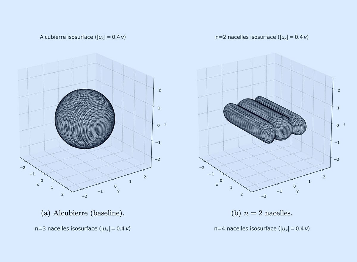 Interessant ist dabei die auffällige Ähnlichkeit zur Science-Fiction. White räumt offen ein, dass die neue Architektur stark an die Warp-Gondeln der USS Enterprise erinnert – „allerdings nicht aus ästhetischen Gründen, sondern weil sich diese Bauform mathematisch aus den physikalischen Anforderungen ergibt“. Schon frühere Überlegungen hatten gezeigt, dass zwei benachbarte Warp-Ringe eine längliche, kapselartige Blase erzeugen können. Die neue Arbeit führt dieses Prinzip konsequent weiter.