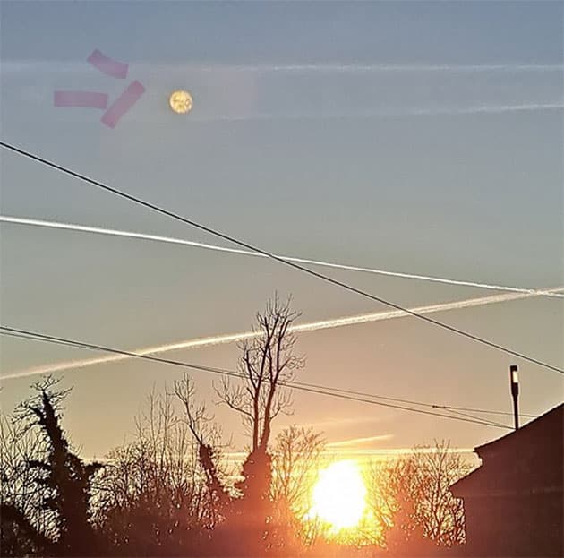 Der Melder legte uns ein Foto zur Begutachtung vor, das er von einem Sonnenuntergang aufgenommen hatte. Beim späteren Betrachten fiel ihm darauf ein großer, runder, gelblicher Ball auf.