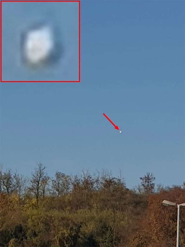 Der Zeuge fotografierte aus einem fahrenden PKW ein helles, rundes Objekt am Himmel, das weder er noch die mitfahrende Person sich erklären konnten.