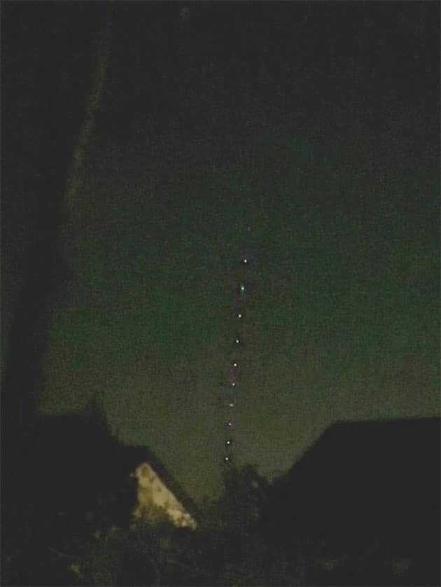 Der Zeuge filmte eine Lichterkette am Himmel, die vom Horizont aufzusteigen schien.