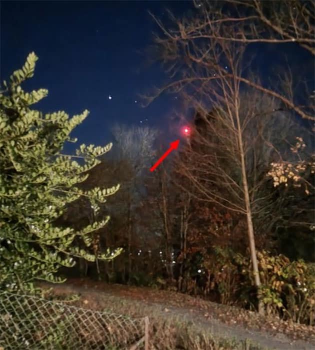 Der 58-jährige Zeuge filmte zusammen mit seiner Frau ein rot blinkendes Licht am nordöstlichen Himmel, das sich nur sehr langsam bewegt hätte und über einen längeren Zeitraum zu sehen war.