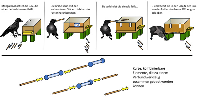 Krähen stellen Werkzeuge aus mehreren Komponenten her