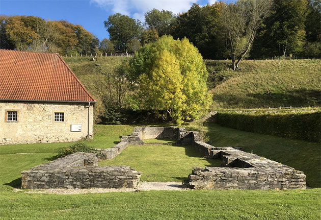 Allgemein sind von dem Frauenkloster Dalheim nur wenige archäologische Überreste erhalten und das genaue Gründungsdatum ist unbekannt, jedoch könnte sich dort bereits im 10. Jahrhundert eine Frauengemeinschaft gebildet haben, berichten die Archäologen und Historiker: „Die ältesten bekannten schriftlichen Aufzeichnungen aus dem Kloster datieren auf das Jahr 1244. Es wird angenommen, dass die religiöse Gemeinschaft etwa 14 Frauen umfasste. Nach einer Reihe von Schlachten im 14. Jahrhundert wurde das Kloster durch Feuer zerstört.“