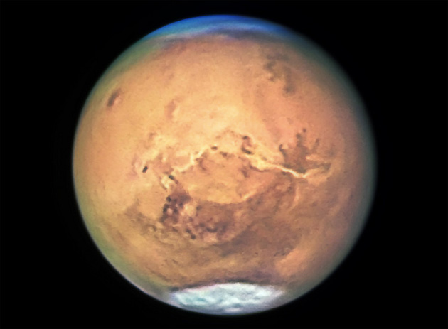 Ähnliche große Staub-Phänomene im Gebiet des gewaltigen Canyonsystems Vallis Marineris und verstärkte blaue Eiskristall-Wolken am Nordpol konnte Voltmer jüngst bei seinen Marsbeobachtungen in Namibia dokumentieren.