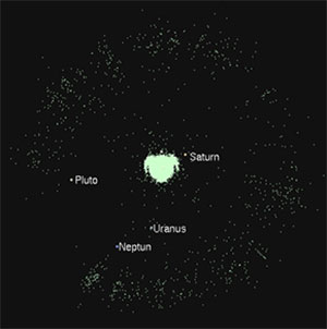Verteilung der bisher bekannten Objekte im Kuipergürtel (Illu.).