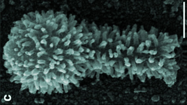 Ein Exemplar der neu entdeckten Tupanviren unter dem Rasterelektronenmikroskop.