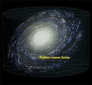Unsere Milchstraße wird aufgrund ihrer Form als Balkenspiralgalaxie bezeichnet. Sie hat einen geschätzten Durchmesser on 170.000–200.000 Lichtjahren. Wissenschaftler schätzen, dass die Milchstraße 100 bis 300 Milliarden  Sterne beheimatet. Intelligente Funksignale von der Erde haben sich bislang rund 120 Lichtjahre ausgebreitet und konnten so unsere Existenz verraten. Der unserer Sonne nächste Stern ist Proxima Centauri, um den bislang zwei Planeten bekannt sind – einer umkreist seinen Stern innerhalb dessen lebesnfreundlicher Zone.