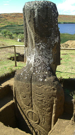 Die von Van Tilburgs Team ausgegrabenen Moai wurden aufrecht entdeckt, einer auf einem Sockel und der andere in einem tiefen Loch, was darauf hinweist, dass sie dort bleiben sollten.
