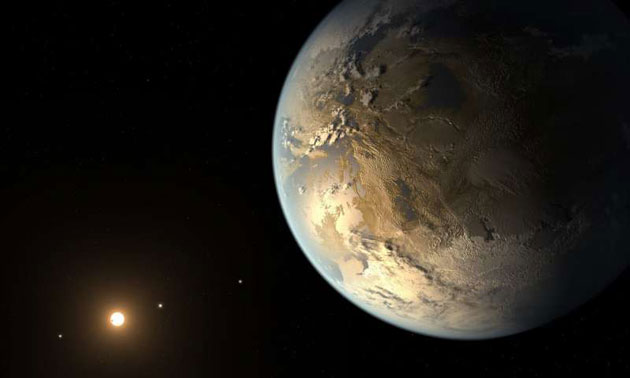 Künstlerische Darstellung des Exoplaneten Kepler-186f (Illu.).