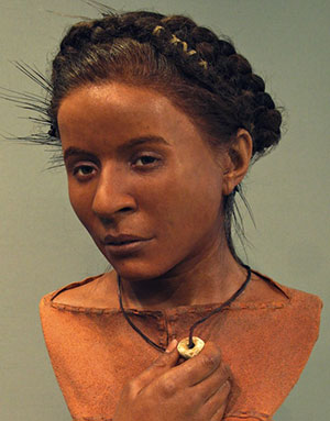 Die aktuelle Studie untersuchte auch die DNA des sogenannten „Cheddar Man“, dem ältesten bislang auf den britischen Inseln entdeckten modern-menschlichen Skelett, das auf ein Alter von 7.100 Jahren datiert wurde (s. Abb.). Hierbei handelt es sich um die Überreste eines vor-landwirtschaftlichen Jägers und Sammlers, die schon im vergangenen Jahr Inhalt einer Studie und spektakulären Gesichtsrekonstruktion waren.
