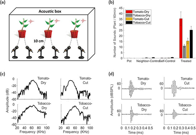In ihren Experimenten mit Tomaten und Tabak, setzten sie dazu eine erste Gruppe von Pflanzen innerhalb schalldichter Kontainer künstlicher Trockenheit und eine zweite Gruppe mittels physischer Schnitte simuliertem Schädlingsfraß aus. Eine dritte, unberührte Gruppe diente der Studie als Kontrollgruppe.