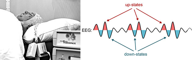 Das Team um Katharina Henke untersuchte, ob das schlafende Gehirn in seinen aktiven Zuständen, den sogenannten «Up-states», in der Lage ist, das Vokabular einer neuen Sprache aufzunehmen: „Im Tiefschlaf beginnen nämlich Gehirnzellen, ihre Aktivität aneinander anzugleichen. Die Gehirnzellen sind für kurze Zeit gemeinsam aktiv, um gleich darauf gemeinsam in eine Phase der Inaktivität zu fallen. Aktive Phasen werden ‚Up-state‘ genannt, passive ‚Down-state‘. Die beiden Phasen wechseln sich ungefähr alle halbe Sekunde ab.“