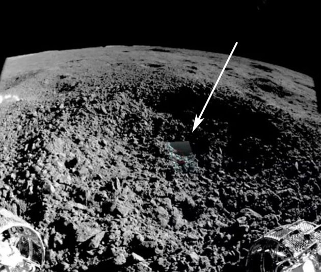 Eines der von der CNSA nun veröffentlichten Aufnahmen (s. Abb.) der Navigationskamera zeigt in der Mitte des Kraters eine ungewöhnlich rechteckige grünliche Struktur sowie eine rote Kreismarkierung. Gegenüber Space.com vermuten einige, von der CNSA unabhängige Weltraumwissenschaftler jedoch, dass es sich hierbei nicht um die Substanz selbst, sondern um Artefakte der Überblendung der Zielerfassung und Messung des VNIS-Instruments handelt.