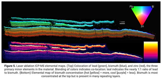 Das ORNL maß die Isotopenverhältnisse von Mg und Blei (Pb) in der Probe und verglich die Werte mit Massenstandards. Die Isotopenzusammensetzung eines Materials kann wertvolle Informationen über seine Herkunft und Geschichte liefern. Die Mg-Isotopenzusammensetzung der Probe liegt innerhalb der erwarteten Werte für ein terrestrisches Material, das einer kinetischen Fraktionierung unterzogen wurde, was auf einen wahrscheinlichen terrestrischen Ursprung hindeutet. Das Pb-Isotopenverhältnis stimmt mit den in terrestrischem Blei gefundenen Verhältnissen überein, was diese Schlussfolgerung weiter unterstützt. Das ORNL fand die Isotopenzusammensetzung dieses Materials unauffällig. Die Mg- und Pb-Verhältnisse der Probe liegen innerhalb der Standardwerte für hergestellte Materialien, was darauf hinweist, dass es sich nicht um ein einzigartiges oder ungewöhnliches Material handelt.