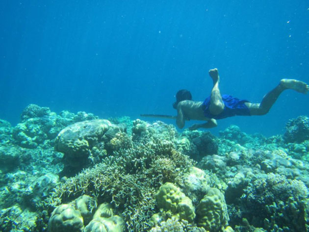 Bajau-Taucher bei der Unterwasserjagd mit einem traditionellen Speer.